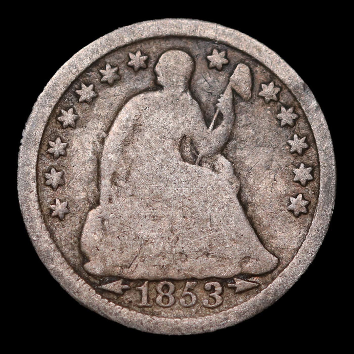 1853-p Seated Liberty Half Dime 1/2 10c Grades f+.