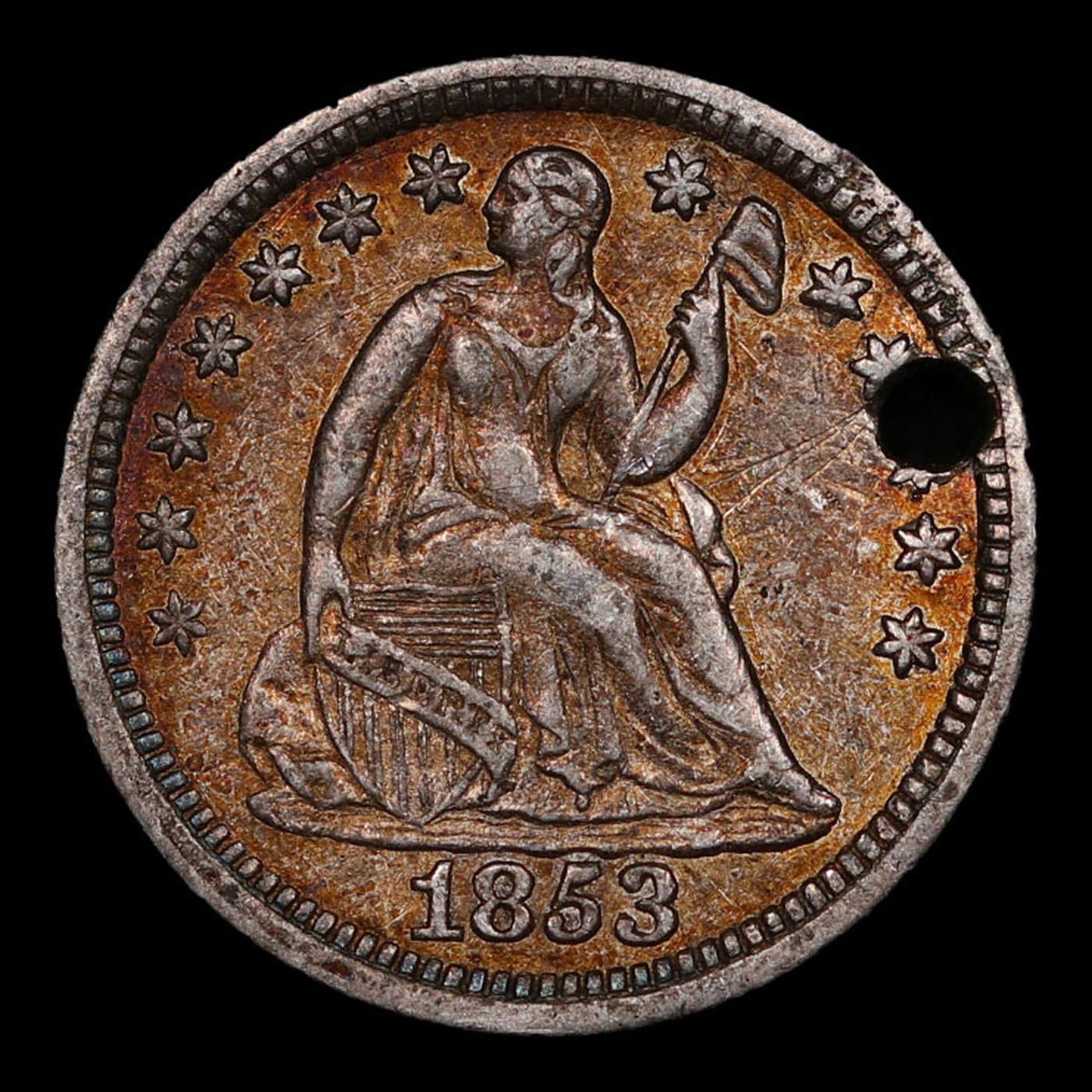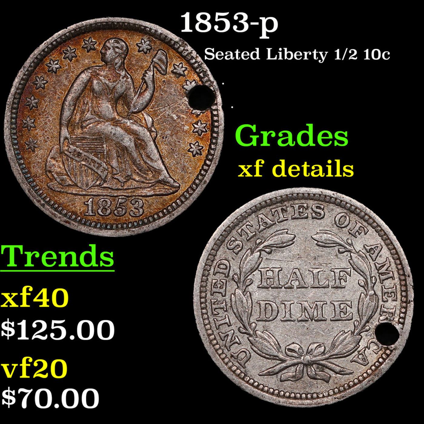 1853-p Seated Liberty Half Dime 1/2 10c Grades xf details.