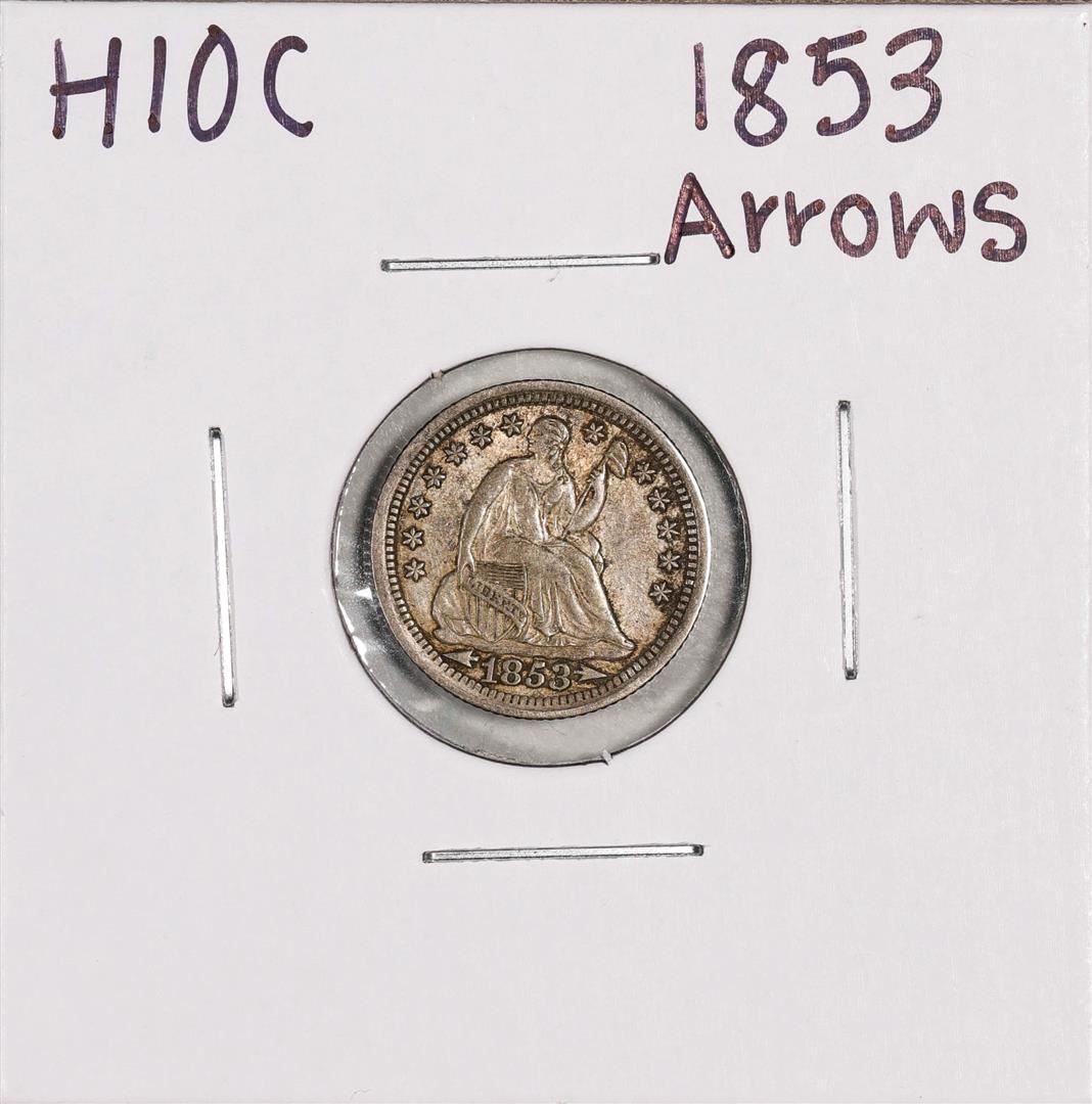 One 1853 w/Arrows Seated Liberty Half Dime Coin.