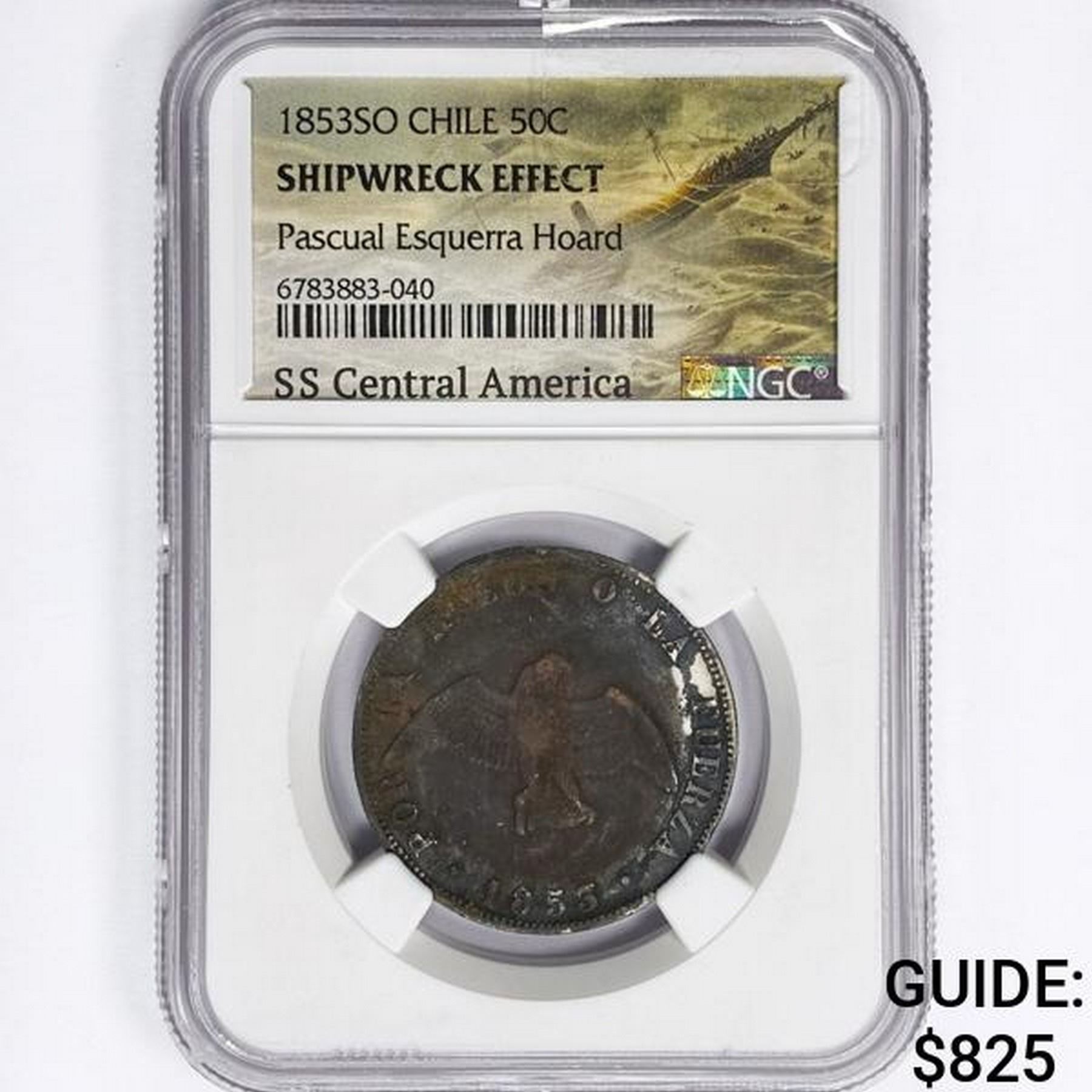 1853SO 50C Chile NGC Shipwreck SS Central America