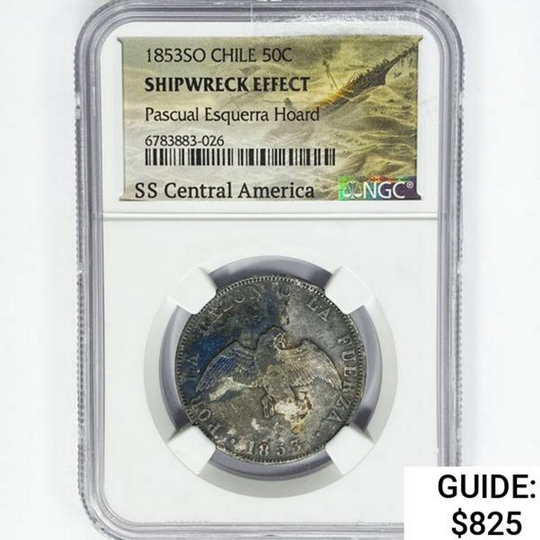 1853SO 50C Chile NGC ShipwreckSS Central America N