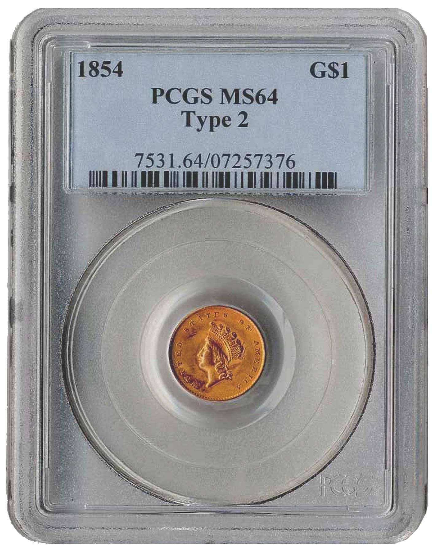 1854 $1 Gold Coin Type 2 -- PCGS Graded MS64