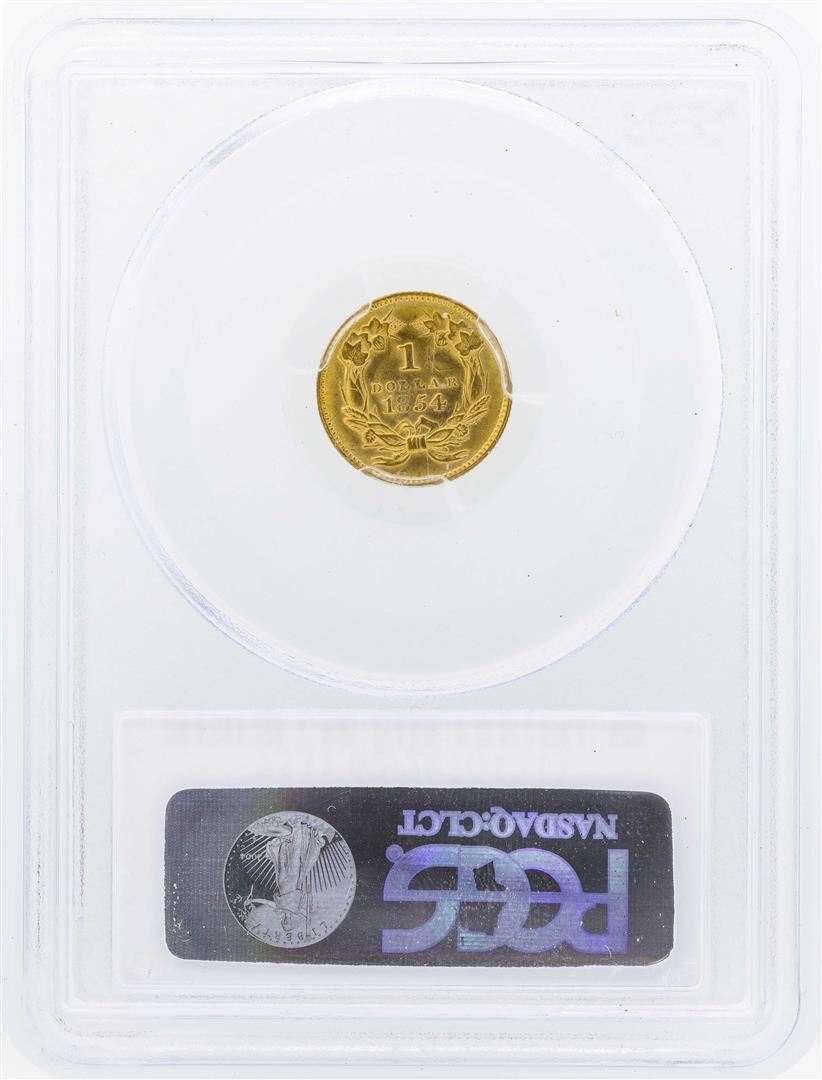 One 1854 $1 Indian Princess Gold Dollar Coin Type 2 PCGS MS62. PCGS Graded.