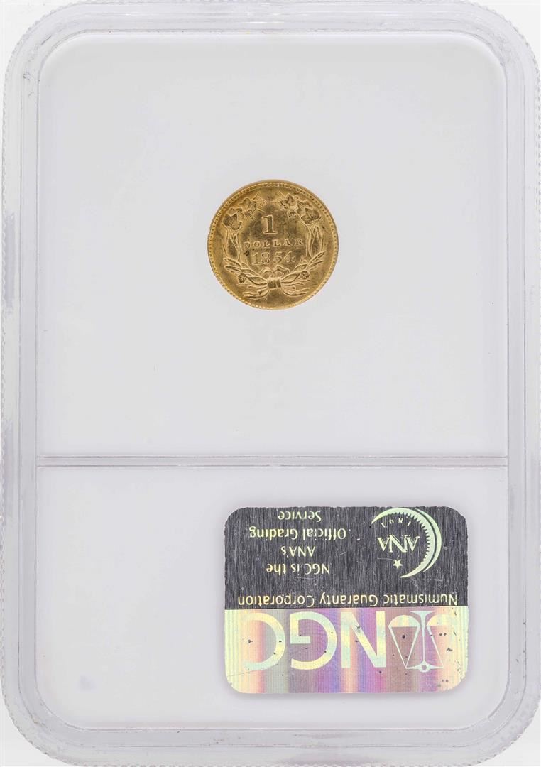 One 1854 $1 Indian Princess Head Gold Dollar Coin Type 2 NGC MS61. NGC Certified.