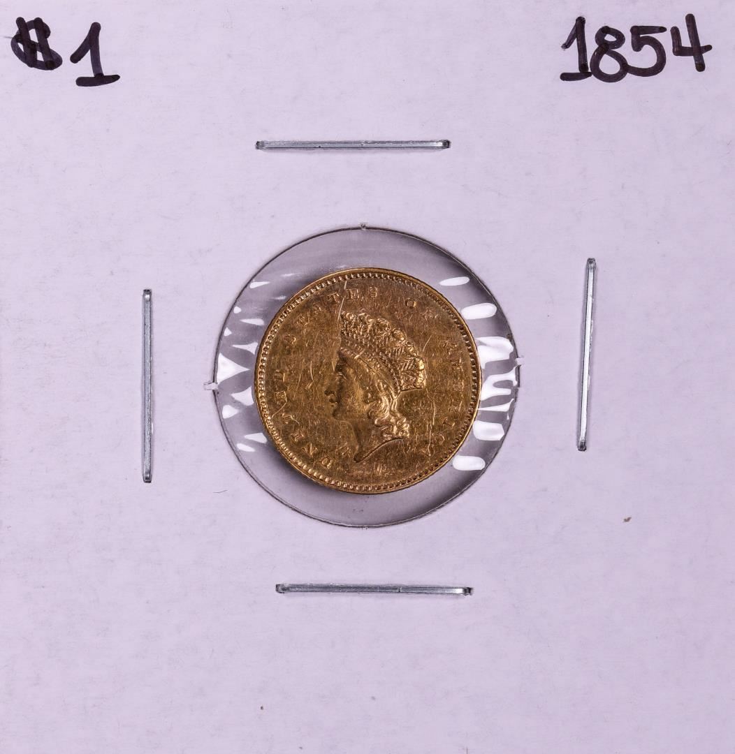 One 1854 $1 Indian Princess Head Gold Dollar Coin.