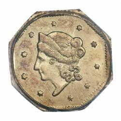 <table><tr><td><TABLE cellSpacing=0 cellPadding=0 width="100%" bgColor=#000000 border=0><TBODY> <TR><TD width="100%"><TABLE cellSpacing=1 cellPadding=3 width="100%" border=0><TBODY><TR><TD width="100%" bgColor=#79735c><FONT face=arial color=#ffffff size=3><B>Description</B> </FONT></TD></TR><TR><TD width="100%" bgColor=#ffffff><FONT face=arial size=2><B>1854 $1 Liberty Octagonal 1 Dollar, BG-508, High R.4, MS62 PCGS.</B></I> Stars on the reverse at 1 and 5 o'clock. 854 in the date very close, 18 is wide. A highly reflective example of this scarce variety. Well struck except for the date. The bright gold surfaces are only faintly abraded.<BR><I>From the Holman Family Collection.</B></I> </FONT></TD></TR></TBODY></TABLE></TD></TR></TBODY></TABLE><BR><A name=PricesRealized></A><TABLE cellSpacing=0 cellPadding=0 width="100%" bgColor=#000000 border=0><TBODY><TR><TD width="100%"><TABLE cellSpacing=1 cellPadding=3 width="100%" border=0><TBODY><TR><TD width="100%" bgColor=#79735c><A name=PR><FONT face=arial color=#ffffff size=3><B>Previous Prices from Heritage Auctions</B> </FONT></A></TD></TR><TR><TD bgColor=#f6f6ed>No Prior Data Recorded </TD></TR><TR><TD bgColor=#ffffff><FONT face=arial size=1 ?>PLEASE NOTE: All prices realized reflect the final hammer price PLUS the buyer's premium in auctions that charge a buyer's premium. Each item has a notation at the top of the listing indicating whether that lot included a buyer's premium. Example: A item that sells with a final hammer price of $100 and a 20% buyer's premium will display with a price realized of $120. All information listed is intended to be as accurate as possible, but errors are possible. Please use this guide carefully and inform us of any inaccuracies. </FONT></TD></TR></TBODY></TABLE></TD></TR></TBODY></TABLE><BR><TABLE cellSpacing=0 cellPadding=0 width="100%" bgColor=#000000 border=0><TBODY><TR><TD width="100%"><TABLE cellSpacing=1 cellPadding=3 width="100%" border=0><TBODY><TR><TD width="100%" bgColor=#79735c colSpan=6><FONT face=arial color=#ffffff size=3><B>Price Guide*</B> </FONT></TD></TR><TR bgColor=#f6f6ed><TD align=middle><B>Grade</B> </TD><TD align=middle><B>Coin World<BR>(Trends)</B> </TD><TD align=middle><B>Numismedia<BR>Retail</B> </TD><TD align=middle><B>Numismedia<BR>Wholesale</B> </TD><TD align=middle><B>Coin<BR>Universe</B> </TD><TD align=middle><B>Heritage<BR>Value Index</B> </TD></TR><TR bgColor=#ffffff><TD align=middle>61</TD><TD align=right>---</TD><TD align=right>---</TD><TD align=right>---</TD><TD align=right>---</TD><TD align=right>---</TD></TR><TR style="FONT-WEIGHT: bold" bgColor=#cccfdd><TD align=middle>62</TD><TD align=right>---</TD><TD align=right>---</TD><TD align=right>---</TD><TD align=right>---</TD><TD align=right>---</TD></TR><TR bgColor=#ffffff><TD align=middle>63</TD><TD align=right>---</TD><TD align=right>---</TD><TD align=right>---</TD><TD align=right>---</TD><TD align=right>---</TD></TR><TR bgColor=#ffffff><TD colSpan=6><FONT size=1>*All information listed is intended to be as accurate as possible, but errors are possible. No item may be returned or refused based on this information which is provided as a service to our customers. You should contact each pricing source directly to determine the accuracy of this information. </FONT></TD></TR></TBODY></TABLE></TD></TR></TBODY></TABLE><BR><TABLE cellSpacing=0 cellPadding=0 width="100%" bgColor=#000000 border=0><TBODY><TR><TD width="100%"><TABLE cellSpacing=1 cellPadding=3 width="100%" border=0><TBODY><TR><TD width="100%" bgColor=#79735c><FONT face=arial color=#ffffff size=3><B>Population Guide</B> </FONT></TD></TR><TR bgColor=#ffffff><TD align=middle><!-- Begin Output of Population Grid--><TABLE cellSpacing=0 cellPadding=0 width="100%" border=0><TBODY><TR><TD vAlign=center><TABLE cellSpacing=0 width="100%" border=1 cellsadding="3"><TBODY><TR><TD vAlign=center><TABLE cellSpacing=0 cellPadding=3 width="100%" border=1><TBODY><TR><TD vAlign=center align=middle bgColor=#f0f1e8 colSpan=2 <CENTER><FONT face=Arial size=2><B>PCGS Pop </B></FONT><CENTER></CENTER></TD><TD vAlign=center align=middle bgColor=#f0f1e8 colSpan=2><CENTER><FONT face=Arial size=2><B>NGC Pop</B></CENTER></FONT></TD></TR><TR><TD vAlign=center><FONT face=Arial size=2>(62)</FONT> </TD><TD vAlign=center align=right><FONT face=Arial size=2>13</FONT> </TD><TD vAlign=center><FONT face=Arial size=2>(62)</FONT> </TD><TD vAlign=center align=right><FONT face=Arial size=2>0</FONT> </TD></TR><TR><TD vAlign=center><FONT face=Arial size=2>(>62)</FONT> </TD><TD vAlign=center align=right><FONT face=Arial size=2>8</FONT> </TD><TD vAlign=center><FONT face=Arial size=2>(>62)</FONT> </TD><TD vAlign=center align=right><FONT face=Arial size=2>0</FONT> </TD></TR></TBODY></TABLE></TD></TR></TBODY></TABLE></TD></TR></TBODY></TABLE><!-- End Output of Population Grid--></TD></TR></TBODY></TABLE></TD></TR></TBODY></TABLE><BR><TABLE cellSpacing=0 cellPadding=0 width="100%" bgColor=#000000 border=0><TBODY><TR> Important notice: Heritage usually auctions material at the rate of 200-250 lots per hour. On some occasions eBay Live bid software or the Internet may not be able to keep up with the pace of the auction. We recommend placing a realistic absentee bid now as insurance to avoid disappointment. Occasionally the auctioneer may eliminate or reject an eBay Live bid, and the auctioneer may also reopen a lot after the close of the eBay live bidding (usually because we missed an audience bid), and may reject your bid even if it shows you as the winning bidder. By bidding via eBay Live, you agree that Heritage may award the lot to another bidder at its sole discretion under the circumstances described above or any other reasonable circumstances. Also please note that all Heritage lots purchased through eBay Live carry a 20% Buyer's Premium. Please make sure you read the Terms and Conditions before you bid.</TD></TR></TBODY></TABLE></TD></TR></TBODY></TABLE>