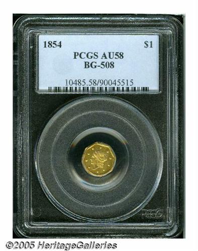 1854 $1 Liberty Octagonal 1 Dollar, BG-508, High