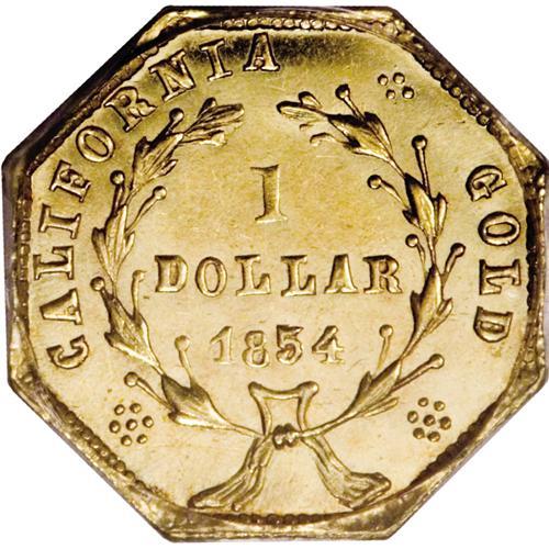 1854 $1 Liberty Octagonal 1 Dollar, BG-532, Low R.4, M