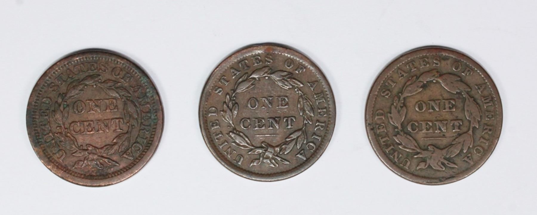 1854 XF, 1838 XF, AND 1837 FINE. ESTIMATE: $150-$175