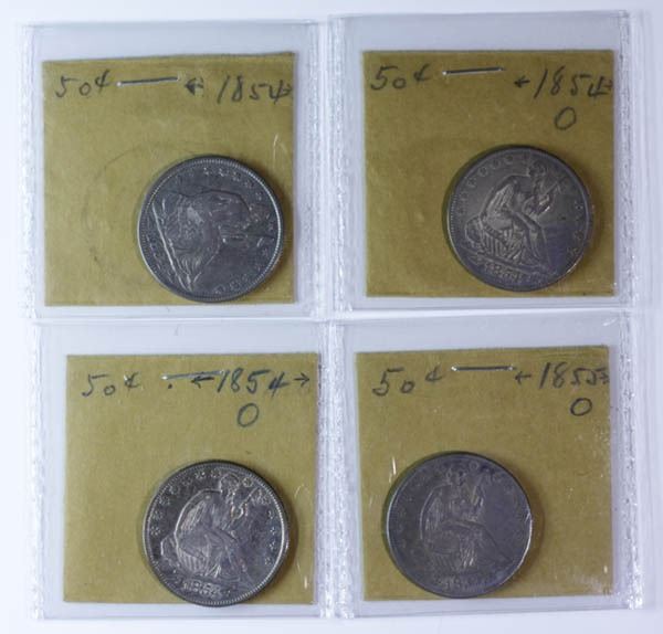 1854-1855 Liberty Seated Half Dollars, 4 pieces