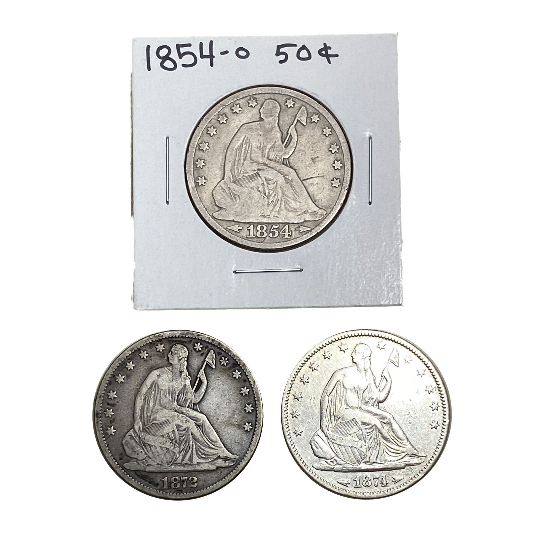 1854-1874 Seated Lib Half Dollar[3Coins] HIGHGRADE