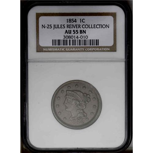 1854 1C N-25, R.3. AU55 NGC. VF35 EAC. Grellman state 1854[1C] N-25, R.3. AU55 NGC. VF35 EAC.