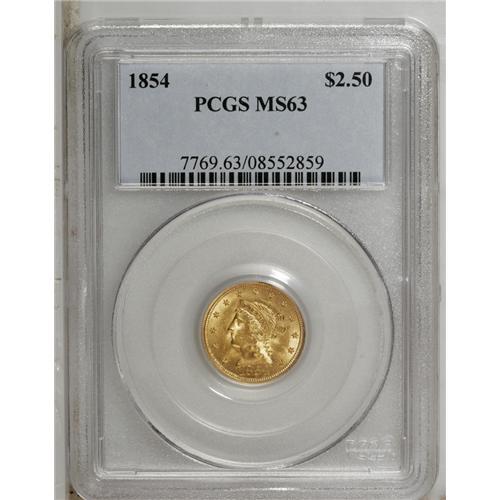 1854 $2 1/2 MS63 PCGS. Select and nicely struck, this