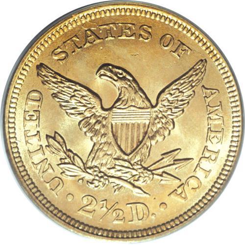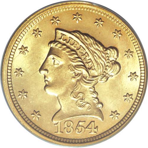 1854 $2 1/2 MS64 PCGS. While the 596,258-piece mintage