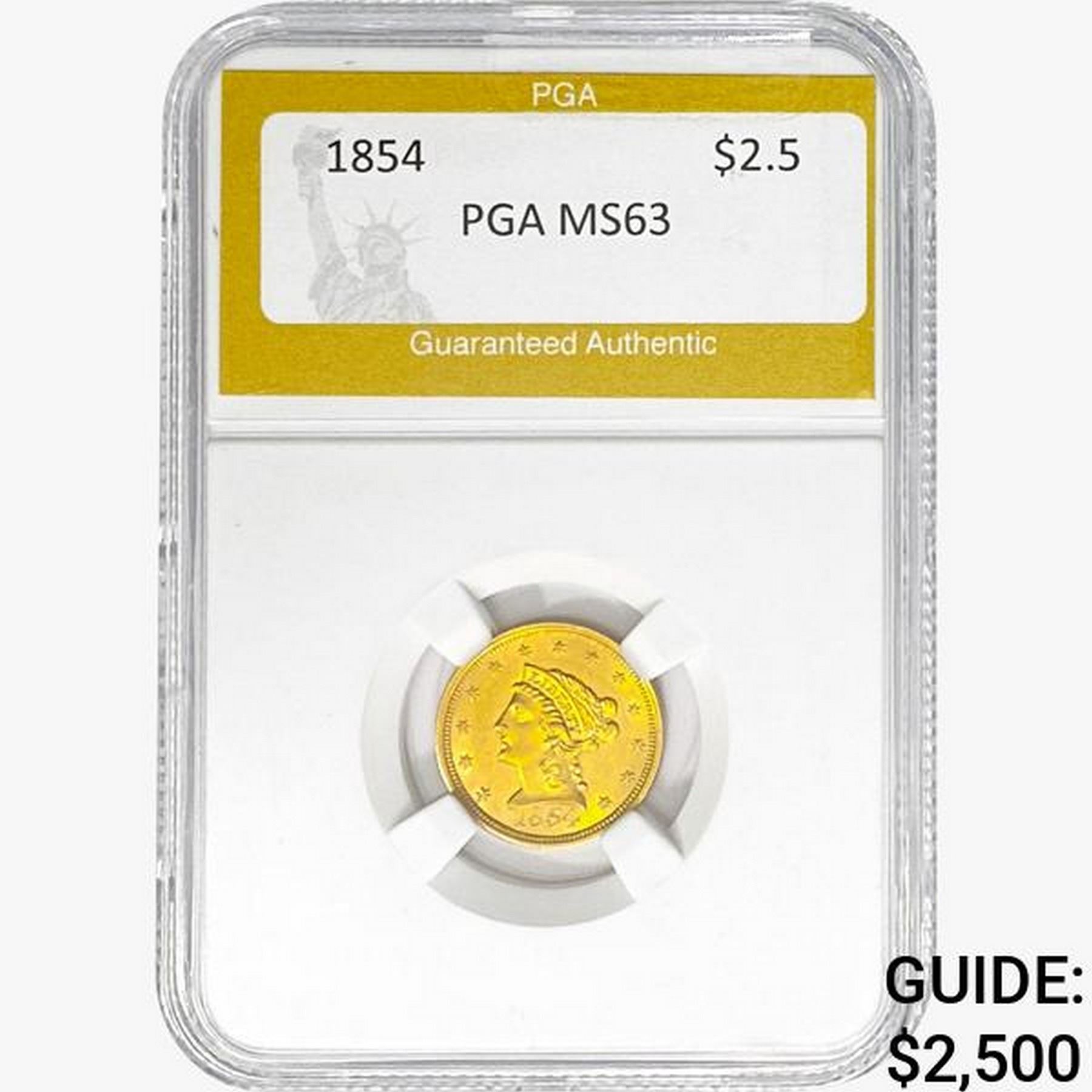 1854 $2.50 Gold Quarter Eagle PGA MS63