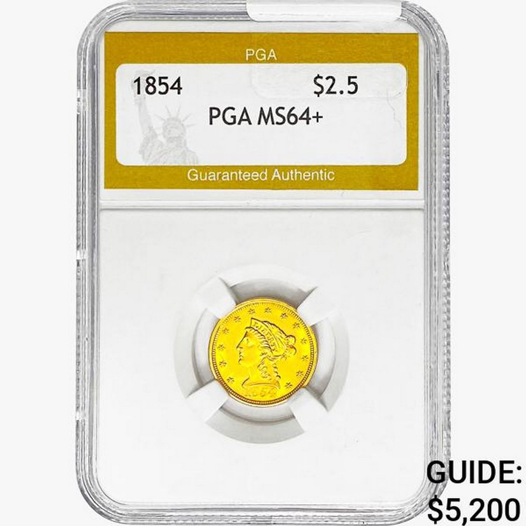 1854 $2.50 Gold Quarter Eagle PGA MS64+