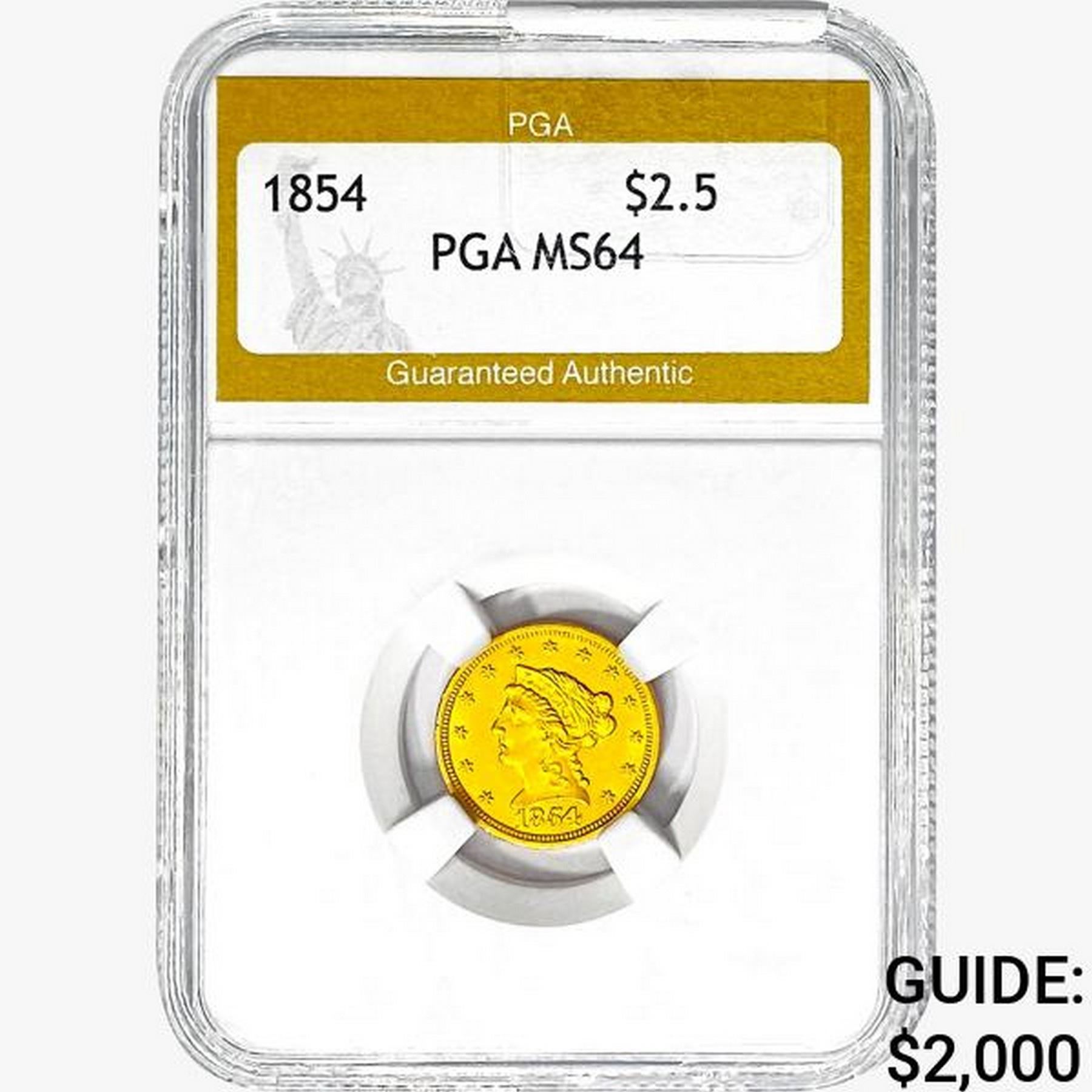 1854 $2.50 Gold Quarter Eagle PGA MS64