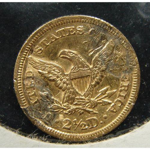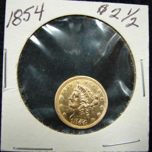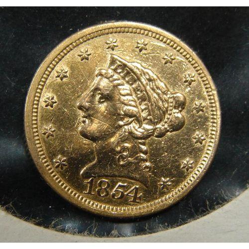 1854 $2 ½ U.S. LIBERTY GOLD COIN. Damaged.