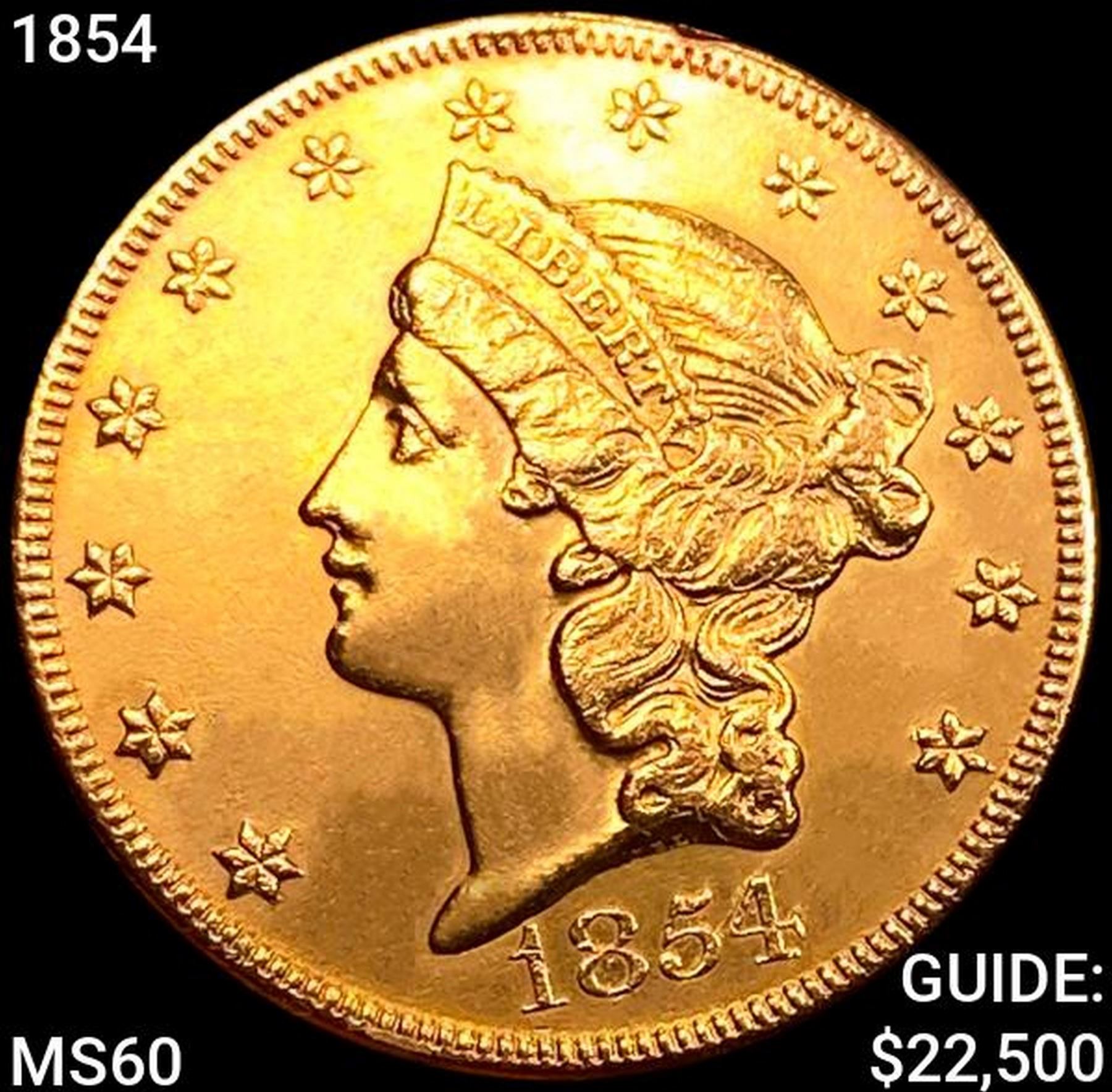 1854 $20 Gold Double Eagle UNCIRCULATED