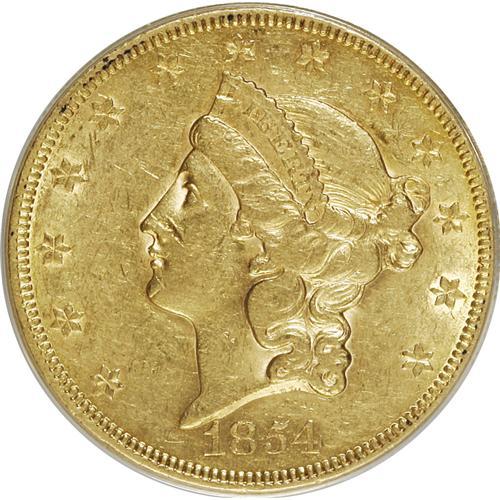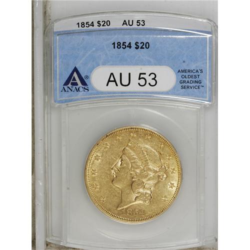 1854 $20 Small Date AU53 ANACS. NGC Census: (67/26