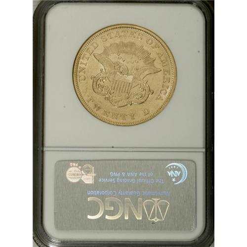 <B>1854 $20 Small Date AU55 NGC.</B></I> This pale gold piece shows minor wear on the wingtips, but luster outlines design elements, and abrasions are only typical for a spent double eagle. The 1854 is conditionally rare, since it was largely unrepresented within shipwreck hoards.<BR><BR><b>Shipping:</b> Coins & Currency (<a target="_blank" href="http://www.heritageauctions.com/common/shipping.php">view shipping information</a>)