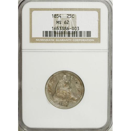1854 25C Arrows MS62 NGC. A pleasing example of this t