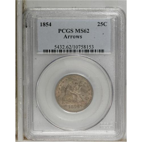 1854 25C Arrows MS62 PCGS. With the highest mintage fo