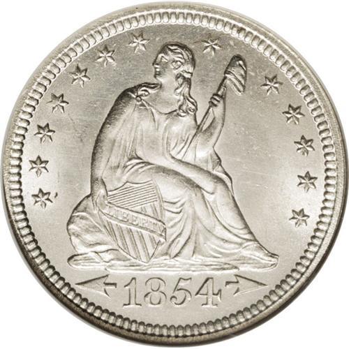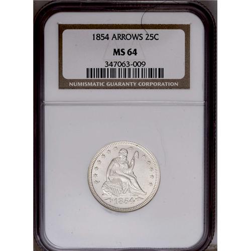 1854 25C Arrows MS64 NGC. This near-Gem Arrows, No Mot 1854[25C] Arrows MS64 NGC.