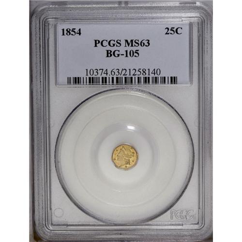 1854 25C Liberty Octagonal 25 Cents, BG-105, R.3, MS63