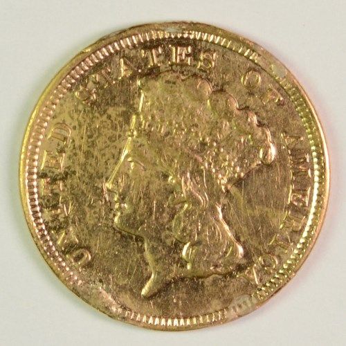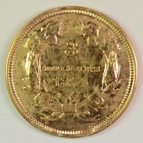 1854 $3.00 GOLD, AU, BUT RIM BUMPS, STILL A DECENT COIN!!