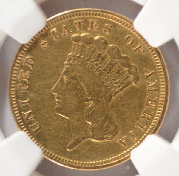 A NICE THREE DOLLAR GOLD FROM THE FIRST YEAR OF ISSUE. ESTIMATE $800.00 TO $850.00