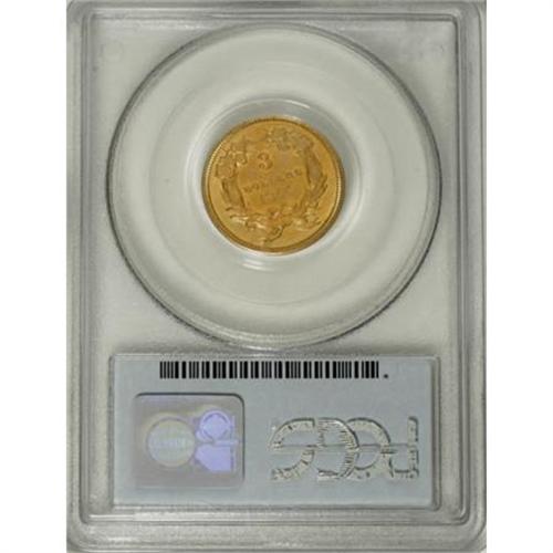 <B>1854 $3 AU55 PCGS.</B></I> A lovely yellow-orange representative from the first year of the series that displays considerable remaining luster, particularly on the reverse. Minimally marked with only modest wear on the highpoints.<BR><BR><B>Coin Engraver:</B> James B. Longacre<BR><BR><b>Shipping:</b> Coins & Currency (<a target="_blank" href="http://www.heritageauctions.com/common/shipping.php">view shipping information</a>\)