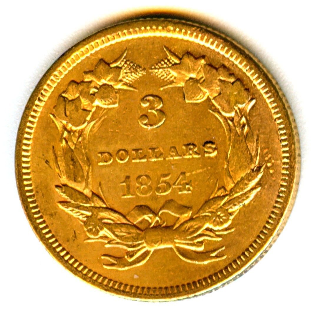 1854 $3 GOLD INDIAN PRINCESS RARE
