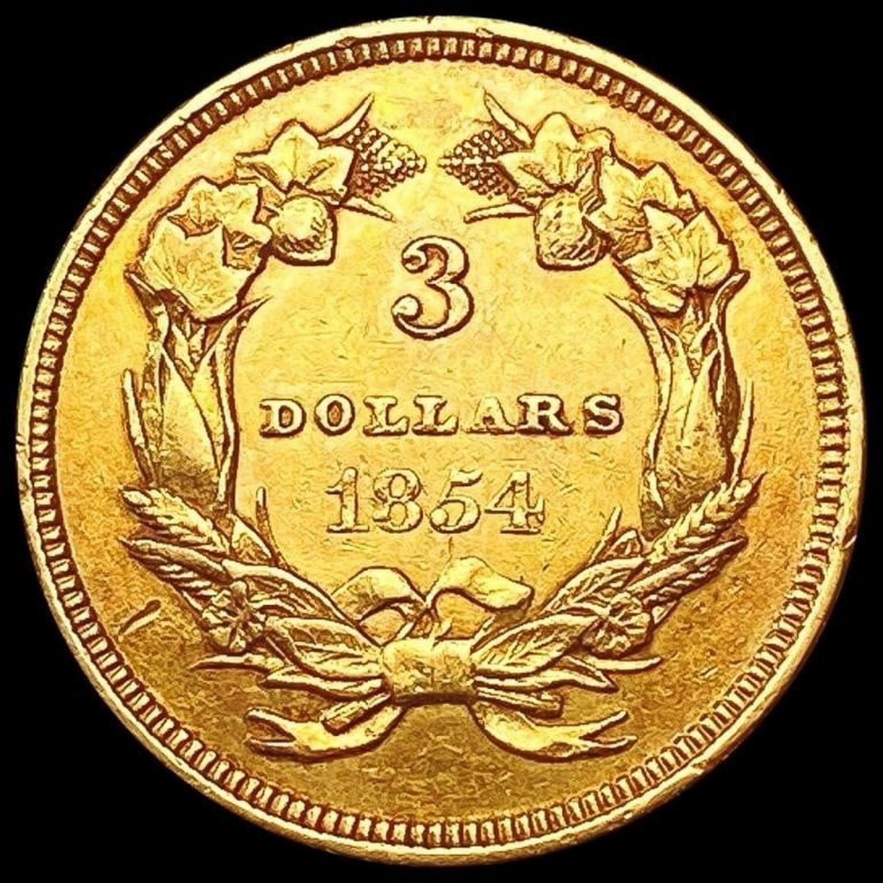 1854 $3 Gold Piece CLOSELY UNCIRCULATED