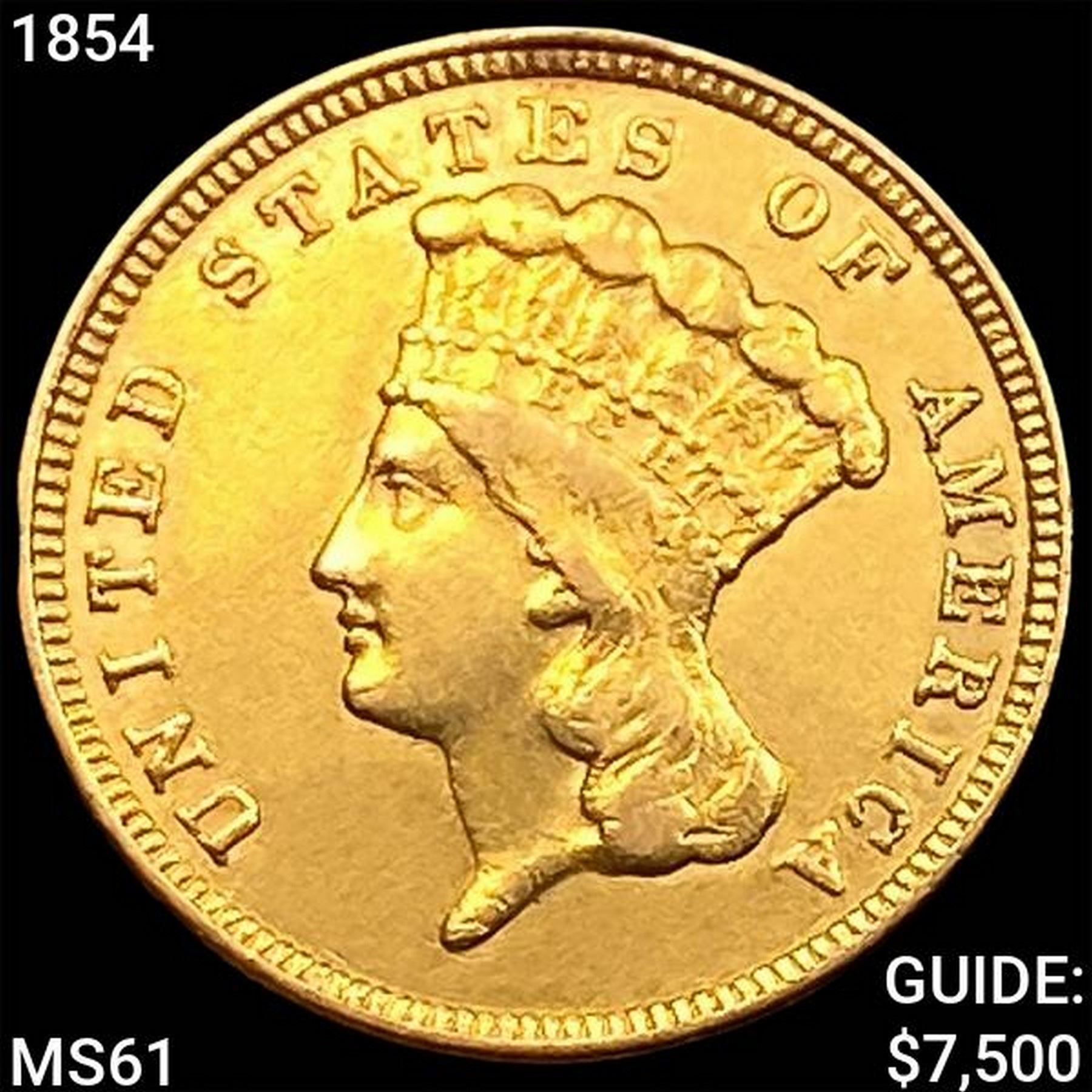 1854 $3 Gold Piece UNCIRCULATED