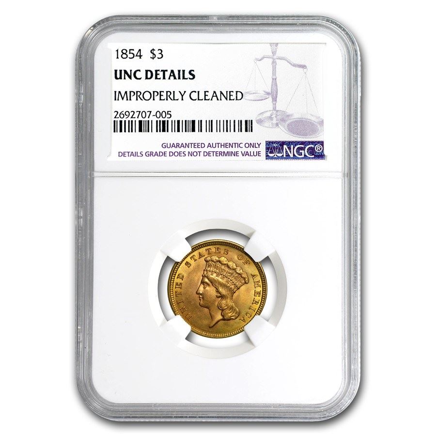 1854 $3 Gold Princess Unc Details NGC (Cleaned)