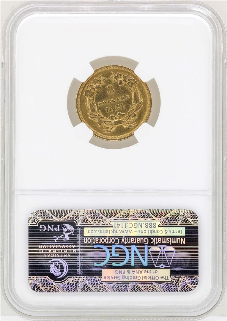 One 1854 $3 Indian Princess Head Gold Coin NGC AU50. NGC Certified.