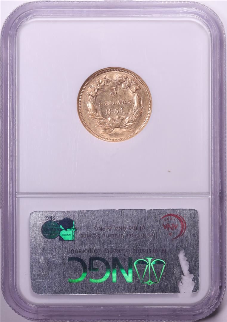 One 1854 $3 Indian Princess Head Gold Coin NGC AU55. NGC Certified.