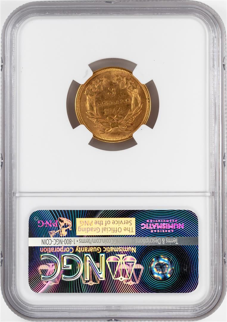 One 1854 $3 Indian Princess Head Gold Coin NGC MS61. NGC Certified.