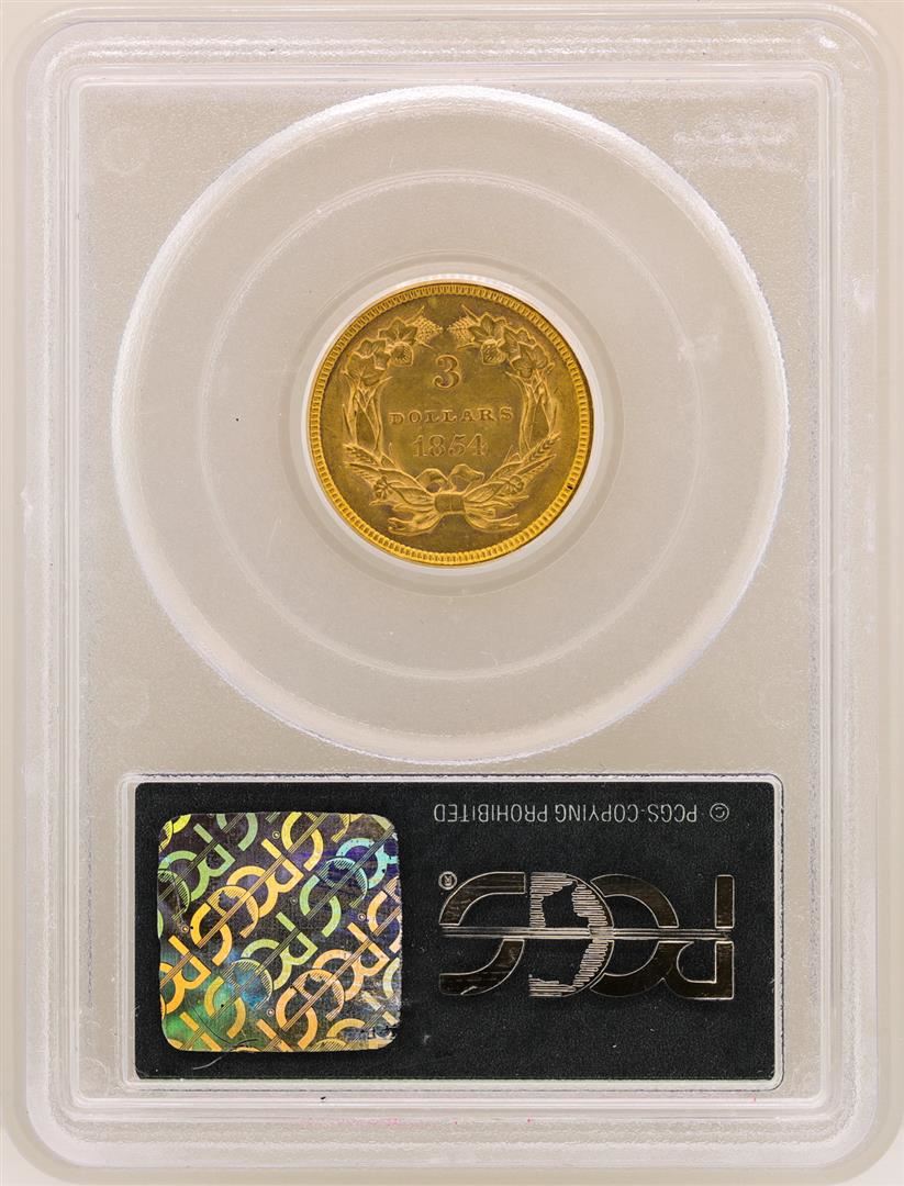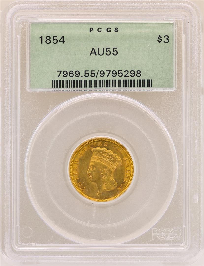 One 1854 $3 Indian Princess Head Gold Coin PCGS AU55. PCGS Graded.