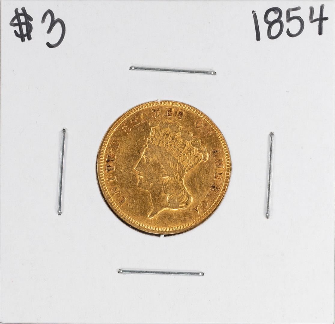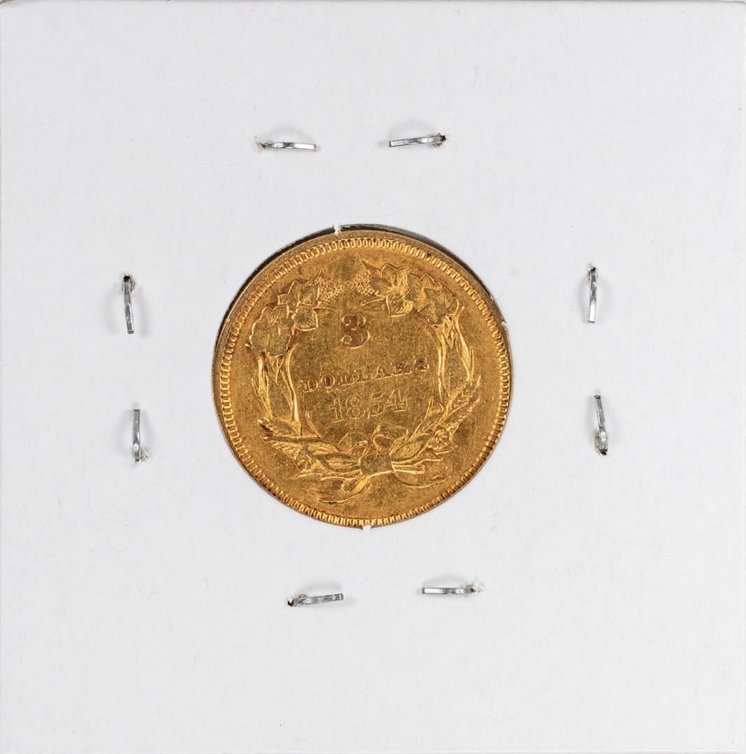 One 1854 $3 Indian Princess Head Gold Coin.