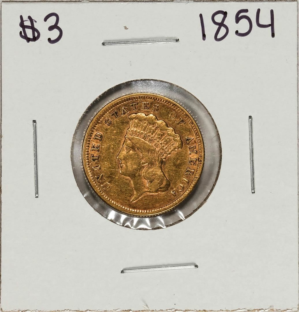 One 1854 $3 Indian Princess Head Gold Coin.