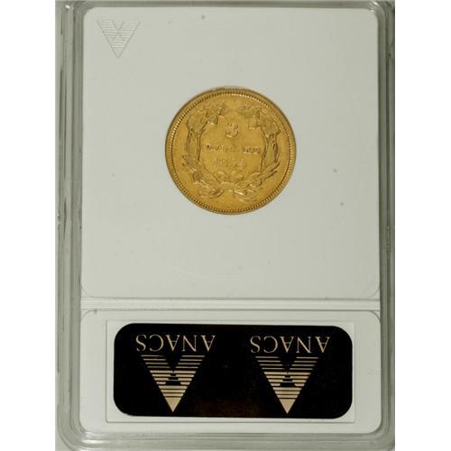 1854 $3 VF35 ANACS. Light to moderate wear appears on