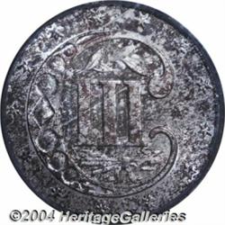 <B>1854<3CS> MS65 PCGS.</B></I> A Gem, blatantly original example of this first year of the Type Two design, the most difficult of the three Three Cent Silver types in top grades. Both sides, but particularly the obverse, exhibit dappled reddish-brown toning in addition to a few isolated splashes of olive and emerald iridescence. The obverse has faint evidence of die clashing which does not affect the technical grade. Population: 27 in 65, 4 finer (7/04). <BR><BR><B>Important notice:</B> Heritage usually auctions material at the rate of 200-250 lots per hour. On some occasions eBay Live bid software or the Internet may not be able to keep up with the pace of the auction. We recommend placing a realistic absentee bid now as insurance to avoid disappointment. Occasionally the auctioneer may eliminate or reject an eBay Live bid, and the auctioneer may also reopen a lot after the close of the eBay live bidding (usually because we missed an audience bid), and may reject your bid even if it shows you as the winning bidder. By bidding via eBay Live, you agree that Heritage may award the lot to another bidder at its sole discretion under the circumstances described above or any other reasonable circumstances. Since eBay bids are not shown to us until we open the lot on the floor, we treat those bids just like floor bids. In most cases the floor responds before the eBay bid is presented to us, due to Internet lag time, so for consistency we have made it a policy that floor bids are always considered first over tie eBay live bids. Also please note that all Heritage lots purchased through eBay Live carry a 20% Buyer's Premium. Please make sure you read the Terms and Conditions before you bid. </span></font></tr></table></td></tr></table>