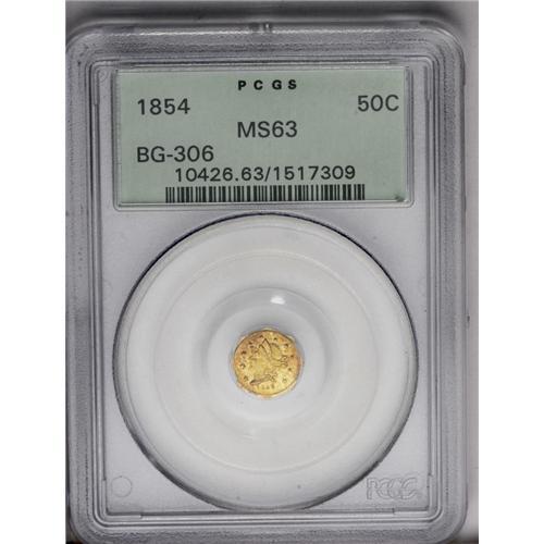 1854 50C Liberty Octagonal 50 Cents, BG-306, R.4, MS63 1854[50C] Liberty Octagonal 50 Cents, BG-306,