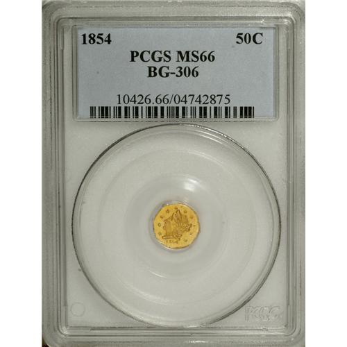 1854 50C Liberty Octagonal 50 Cents, BG-306, R.4, MS66