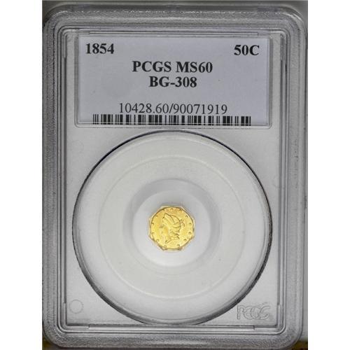 1854 50C Liberty Octagonal 50 Cents, BG-308, R.4, MS60