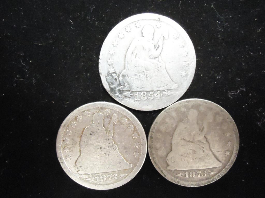 1854,73 & 73 SEATED LIBERTY QUARTERS