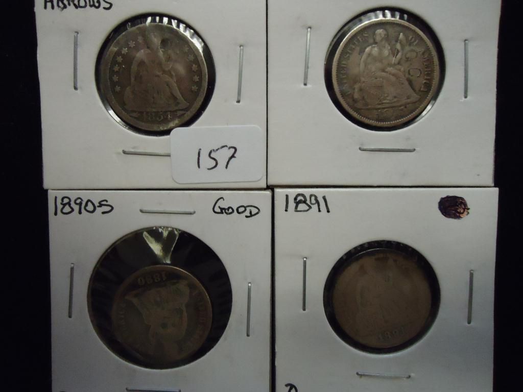 1854,75,90-S & 91 SEATED LIBERTY DIMES