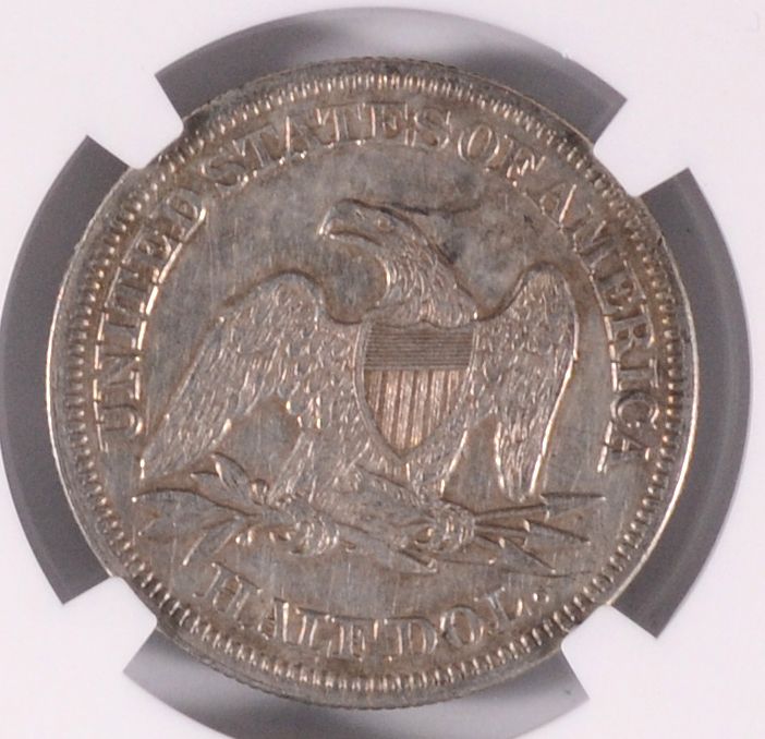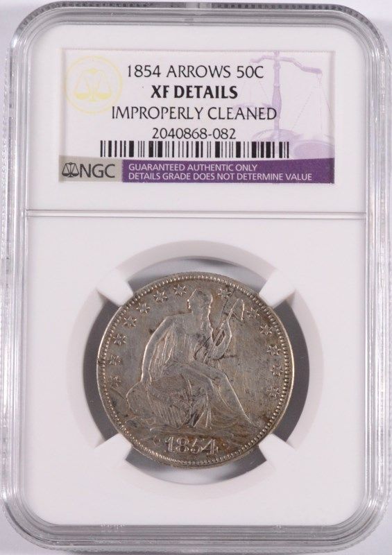 1854 ARROWS SEATED HALF DOLLAR, NGC AU XF DETAILS
